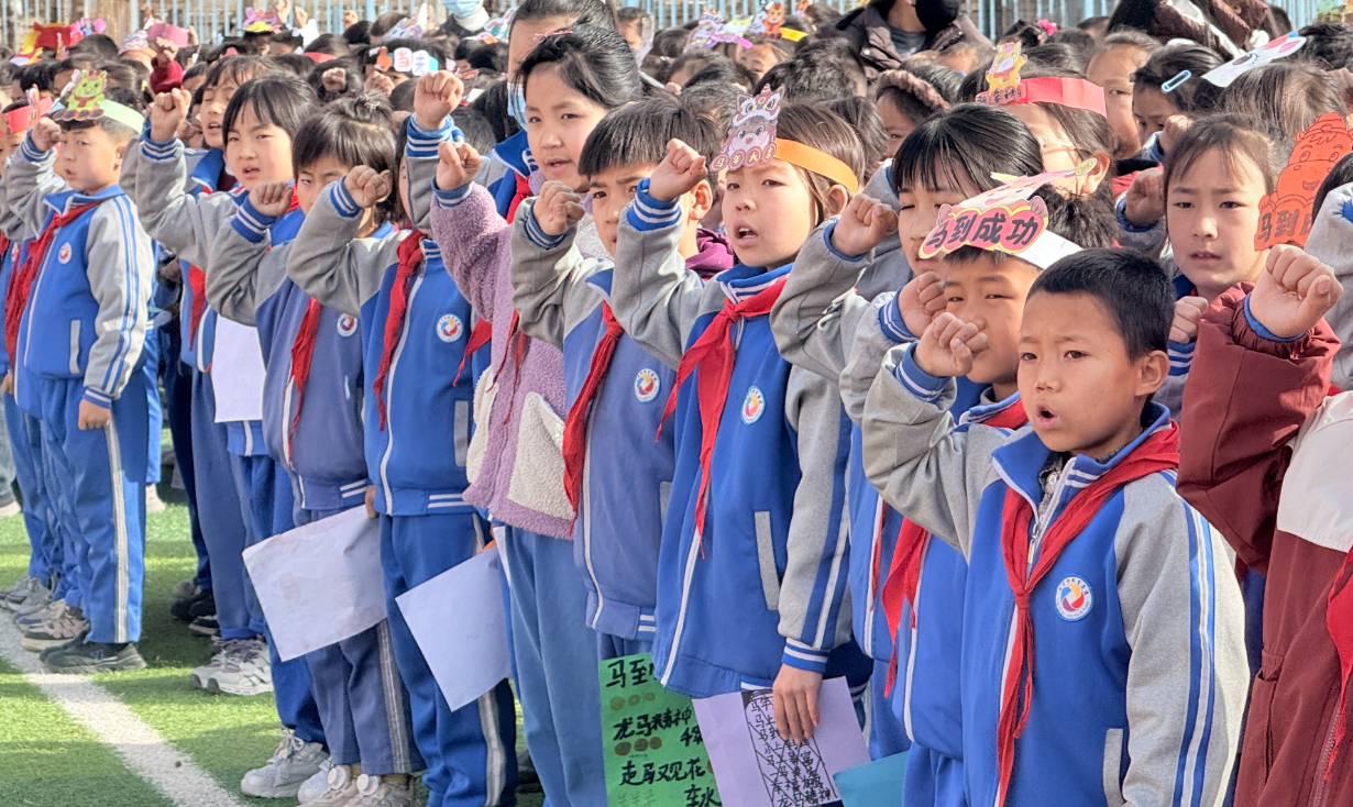 兴庆区月牙湖教育集团大塘分校的校园里,马年头饰成了最亮眼的装饰,孩子们戴着亲手制作的头饰,走在红毯上,精神抖擞地跨过创意跨栏,蹦蹦跳跳地迈入校园。操场上,开学典礼暨雷锋月启动仪式举行,五星红旗冉冉升起,全体师生肃立敬礼。“雷锋精神一直在我们身边……”六三中队国旗下的演讲响彻校园,校领导的寄语饱含期许,鼓励孩子们以骏马奋进之姿勤学笃行,全体同学举起右拳,庄严宣读雷锋宣言,认真聆听雷锋故事,小脸上满是认真,奉献、友爱、互助的种子在心中悄悄发芽。