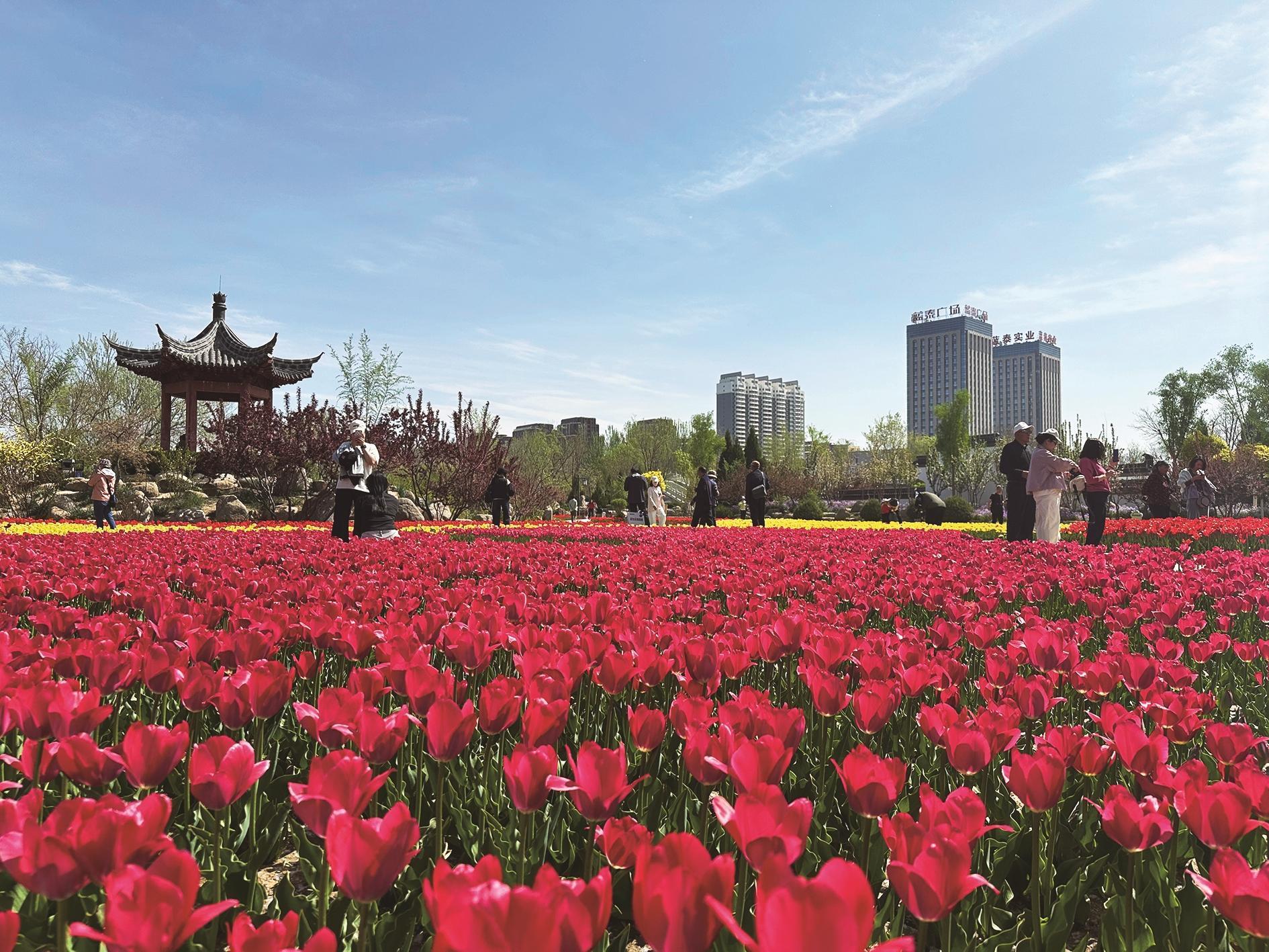 海宝公园郁金香盛开。